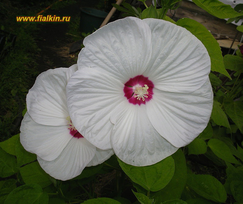 Hibiscus moscheutos Русский Размер Белый с малиновым центром (Гибискус болотный Белый с малиновым центром серии Русский Размер).